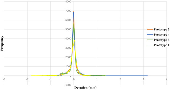 Deviation distribution in prototypes of experimental and control groups.