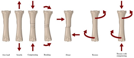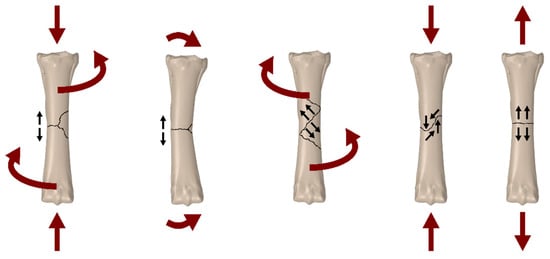 - Markel, M.D. Fracture Biomechanics; John Wiley & Sons Ltd.: Hoboken, NJ, USA, 2019; pp. 12–23. [Google Scholar] [CrossRef]