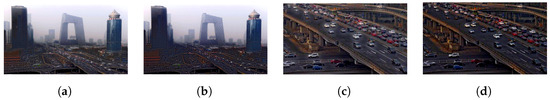 - Tarel, J.P.; Hautiere, N. Fast visibility restoration from a single color or gray level image. In Proceedings of the 2009 IEEE 12th International Conference on Computer Vision, Kyoto, Japan, 27 September–4 October 2009; IEEE: Piscataway, NJ, USA, 2009; pp. 2201–2208. [Google Scholar]