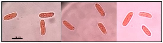 - Bandoni, R.J. Safranin O as a Rapid Nuclear Stain for Fungi. Mycologia 1979, 71, 873–874. [Google Scholar] [CrossRef]