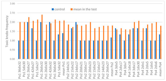 The analysis of cluster averages by K-means, considering nematode C. elegans mobility and viability as a result of the toxic properties of the tested mycelia developed in 5–24 h of the tests, resulted in the separation of two clusters. Among the tested strains, the mycelia included in cluster 2 (lower mean nematode mobility) developed better killing properties against C. elegans than those included in cluster 1. Good toxic and killing features were presented by strains Po1 5dix27, Po1 5dix32, Po2 14dix21, Po2 20dix21, and Po2 15dix17. Among Po4 progenies, the best properties were displayed by Po4 1dix30 and Po4 3dix7, but they were grouped in cluster 1, which means that they performed worse than those from cluster 2 (Figure 10 and Figure 11, Table 3).