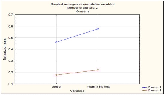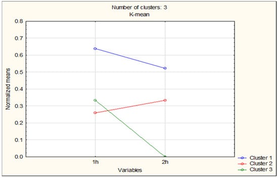 Analysis of cluster averages by K-means, considering toxic hyphal knob production, in the presence of H. schachtii cysts, developed in 1 h and 2 h.