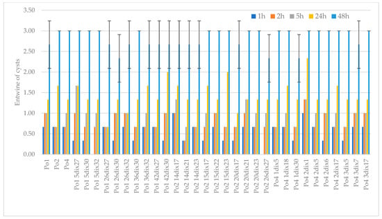 Mycelia were assessed according to the development of toxin-producing knobs in the presence of cysts using a scale of 0–3 (microscopic observations), where (0) means no hyphal knobs produced; (1) denotes few hyphal knobs appearing, (2) denotes an average number of toxin-knobs, and (3) denotes the high intensity of their occurrence. Microscopic observations were made 1, 2, 5, 24, and 48 h after the test started [Supplementary Figure S2].