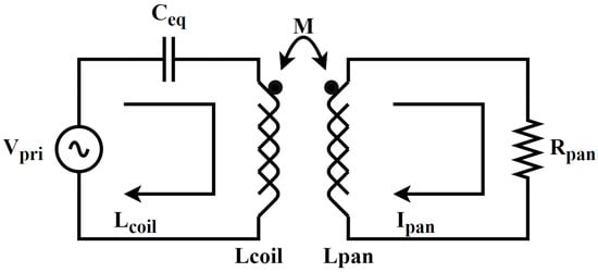 When industrial and domestic induction heating systems are analyzed, the pan-induction coil structure is modeled as an equivalent series inductance and resistance. In the literature, induction heating systems are modeled as magnetically coupled circuits. The primary side consists of a power circuit and a resonance tank. The power circuit applies a square wave to the resonance tank. The fundamental harmonic of this voltage is calculated by using the first harmonic approximation method. The resonance tank consists of an equivalent resonance capacitor and an induction coil. The secondary side consists of the inductance and resistance of the pot used. The electrical equivalent circuits are shown in Figure 2.