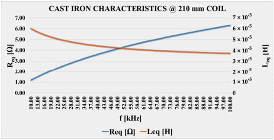 The actual LCR meter measurements with cast-iron pan on a 210 mm induction coil.