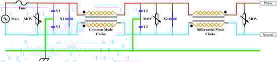 In the EMI filter, 2 X2 safety class film capacitors (5 μF) and 4 Y2 safety class film capacitors (22 nF) were used. In addition, there was a common mode coil wound on the MnZn magnetic core, and a differential mode coil wound on the iron powder core. Three MOVs (metal oxide varistors) were preferred as protection against high voltage. A fuse was used for protection purposes at the input.