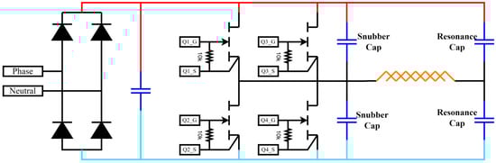 In order to obtain DC voltage in the power converter, a full-bridge rectifier was used. Two Gan HEMTs were connected in parallel.