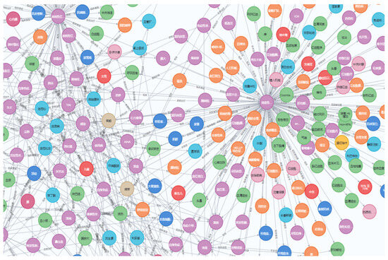 They were combined and plugged into the Neo4j database, which provides powerful support through its efficient data retrieval and visualization capabilities as a representative of graph databases. The graphical medical knowledge represented by a node-edge diagram has storage and display functions. Figure 5 depicts the eventual graph database of medical knowledge that we produced, which presents comprehensive information resources and powerful analysis tools for research and applications in the medical field. In this specific knowledge graph, all entity and relationship descriptions are conducted in Chinese.