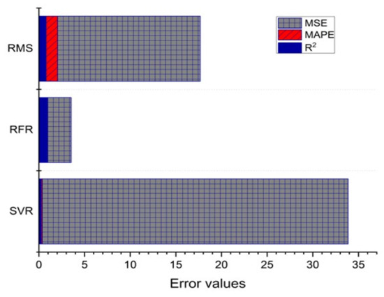- This study found that the RFR model outperformed the SVM regression model and RSM, as evidenced by the lower errors in the performance metrics when comparing the three methods.