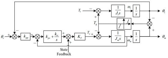 Friction compensation is mainly divided into two ideas: friction model-based compensation and non-friction model-based compensation. The essence of the friction model-based compensation strategy is feedforward compensation: the fixed friction model parameters are obtained through offline experiments, or the friction parameters are recognized online through adaptive methods. Then, the friction torque is estimated according to the current state parameters, such as the system speed, and feedforward compensation is carried out. One study [10] used a simple static model (Coulomb + viscous hysteresis) and a Stribeck model for compensation, and the experimental results showed that the latter was more effective. Another study [11] used the LuGre model in the start-up phase and switched to the Stribeck model in the smooth operation phase, which reduced the average speed tracking error to a seventh of the original one. The study by [12] proposed an adaptive friction compensation scheme based on the LuGre model, in which the unknown dynamic parameters and the unmeasurable internal states are obtained by an observer.