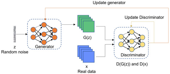 The training approach of the GAN involves a competitive interaction between two networks. The generator network transforms random noise into the input space, while the discriminator network is tasked with distinguishing between generated samples and real data samples, i.e., it determines whether the input data to the discriminator come from real data or generated data. The generator is instructed to outperform the discriminator. The objective function of the competition between the generator and the discriminator is shown in Equation (1).