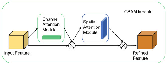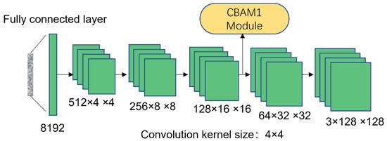 It is essential to have a thorough understanding of the specific characteristics and contextual background in side-scan sonar images in order to produce images of a high quality. To compensate for the convolution operation’s limitation of only calculating correlations within local pixel regions, improve the integration of global and local information in input images for enhanced learning, and provide better stability while avoiding the inherent mode collapse problem, this paper introduces the CBAM into the generator, as illustrated in Figure 3.