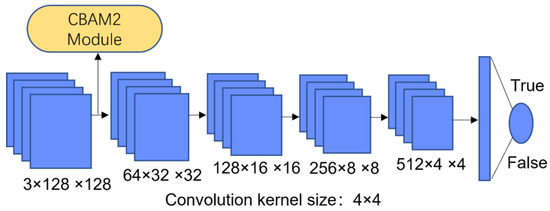 To help the model better understand the relevance and importance of input data, improve its generalization ability, enhance target learning, and reduce information diffusion, this paper also introduces the CBAM into the discriminator, as illustrated in Figure 5.