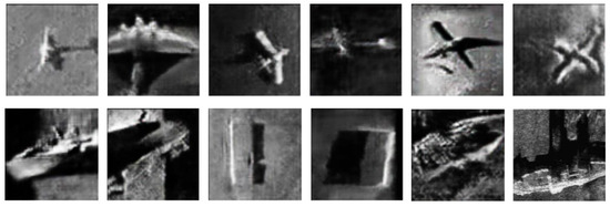 As a result, few GAN networks can meet the data augmentation needs for a low number of samples [17,18]. In 2017, Ishaan Gulrajani et al. [19] proposed the Wasserstein GAN with a gradient penalty (WGAN-GP). The WGAN-GP is an improved GAN algorithm with the following advantages over traditional GAN algorithms: It solves the instability problem of traditional GAN training, making it easier to train the generator and discriminator. By introducing a gradient penalty mechanism, the training process becomes smoother and more stable. Establishing a more effective loss function between the generator and discriminator enables the generator to learn better distributions of generated samples, resulting in higher-quality samples that are capable of generating more realistic images or data. It also improves the stability of the optimization process and addresses issues like gradient vanishing. Therefore, the WGAN-GP network is chosen as the principal approach for augmenting side-scan sonar data. However, using WGAN-GP to improve underwater target images captured by black-and-white SSS is impractical because the original network’s dataset mainly includes daily life images and natural scenery images, resulting in unrealistic-looking targets (Figure 1).