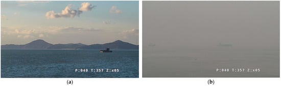 However, the proposed algorithm still faces challenges in dark environments, such as evening or nighttime conditions [36]. In low-light conditions, achieving sufficient illumination can be difficult, reducing the accuracy of fog detection. Therefore, future research should explore integrating additional lighting devices or thermal cameras to address these limitations. Additionally, verifying the proposed algorithm under various weather conditions and marine environments is essential in order to contribute to the development of real-time marine safety systems.