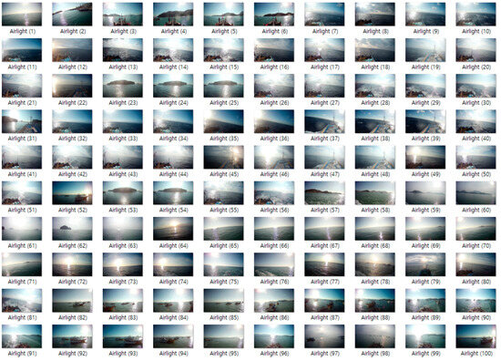 Figure 6. Dataset for obtaining the atmospheric light estimation threshold. - DC Image Creation: For each image, the minimum value among the R, G, and B channels of every pixel was chosen to generate the DC image, which captures the impact of fog.
