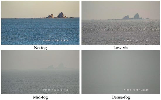 - Hwang, S.-H.; Park, S.-K.; Park, S.-H.; Kwon, K.-W.; Im, T.-H. RDCP: A Real Time Sea Fog Intensity and Visibility Estimation Algorithm. J. Mar. Sci. Eng. 2024, 12, 53. [Google Scholar] [CrossRef]
