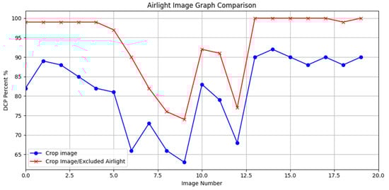 Image set with the effect of atmospheric light: graph comparison between Crop Image and Crop Image excluding atmospheric light.