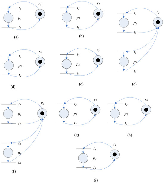 , where , the initial marking is the number of available resources and is the idle state place. There is no common transition between and for .