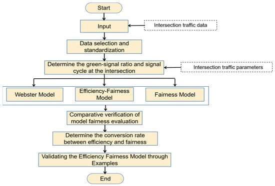 Urban road intersections serve as crucial nodes in urban road networks, with signal control playing a pivotal role. However, they also represent bottlenecks that cause traffic delays. According to the “2020 Second Quarter Analysis Report on Traffic in Major Cities in China” released by Gaode Map, the average delay at intersections during peak hours in major Chinese cities exceeds 30 s per vehicle, with Shenzhen recording the highest delay at 39.22 s per vehicle. In urban signalized intersections, the most direct manifestation of fairness is the consistency of average delay across different phases. However, currently, most signal timing plans are designed with the objective of minimizing overall delay for vehicles without considering the unfairness caused by differences in average delay among phases before establishing the optimization model. Equal average delay among phases is only achieved when the saturation levels of each phase are equal. The distribution of urban traffic volume over time is uneven, with significantly lower traffic during off-peak hours compared to rush hours. For example, during off-peak hours, the hourly traffic volume in cities like Shenzhen and Guangzhou is only one-third of that during rush hours. Therefore, sacrificing intersection delay during off-peak hours to achieve fairness is feasible.