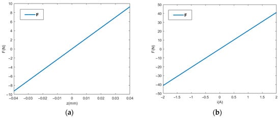 Let the current of the levitating coil be zero and the plane position y = 0, then Equations (33) and (34) can be transformed into:
