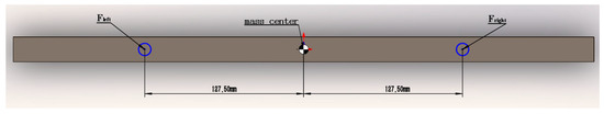 In Equation (39), F is the sum of all forces on the MC in the z-direction, m is the mass of the MC, and za is the displacement of the mass center of the MC in the z-direction. In Equation (40), Mα is the torque of the resultant force of F, Jα is the moment of inertia, and α is the rotation angle. Figure 7 shows the position of the mass center, the force points of the levitating forces on the left and right ends of the MC, and the length of the arm of force.