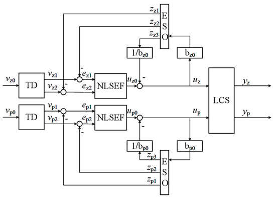 According to Equation (66), ESO exhibits superior suppression of disturbances to uz. However, the effectiveness in suppressing disturbances introduced by yz requires further analysis. Hence, the effects of uz interference and nonlinear factors can be disregarded to simplify the analysis; setting uz = 0, ζ1(e) = ζ2(e) = 1, and then substituting Equation (64) into (66) yields: