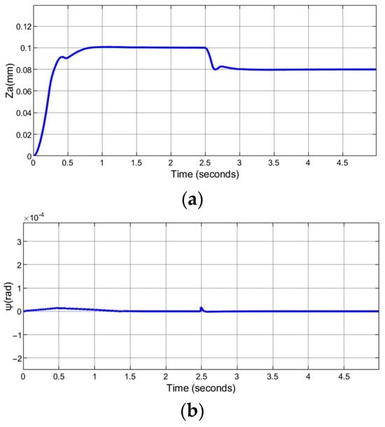 When t = 0 s and the y-direction coordinate value of the MC is 0, a given value z*a = 0.1 mm is suddenly applied with ψ* = 0 rad/s to detect the response characteristics of the levitating system during system startup.