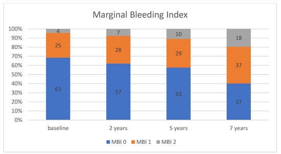 Marginal Bleeding Index parameters on the different follow-up time points.