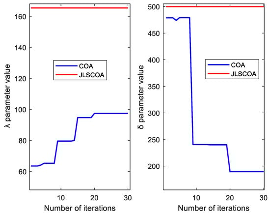 Here, denotes the optimal position obtained through the number of iterations, and denotes the optimal position obtained after updating the population of the previous generation.