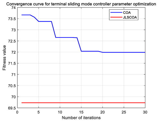 A comparative simulation analysis is performed between the terminal sliding mode controller with given parameters and the terminal sliding mode controller optimized using the JLSCOA algorithm. The parameters of the given terminal sliding mode controller are .