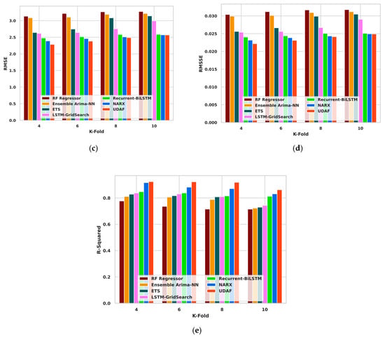 Furthermore, Figure 9d demonstrates the UDAF model’s proficiency in demand forecasting through RMSSE, outperforming NARX by 3.125 % with a 0.031 RMSSE for a K-fold 10.