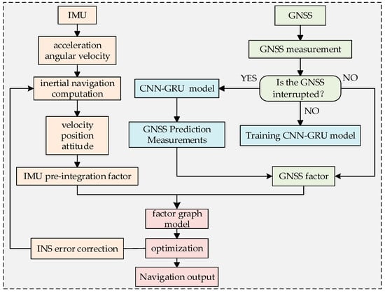 The remainder of this paper is organized as follows: Section 2 introduces the integrated system solution and presents the implementation process of the proposed method. Section 3 discusses the model and information fusion theory of factor graph. Section 4 details the CNN-GRU network and the neural network prediction assistance model. Section 5 conducts road tests and result analysis under frequent and sustained GNSS interruptions, with conclusions presented in Section 6.