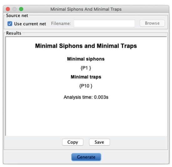 - Liu, G.; Li, Z.; Al-Ahmari, A.M. Liveness Analysis of Petri Nets Using Siphons and Mathematical Programming. IFAC Proc. Vol. 2014, 47, 383–387. [Google Scholar] [CrossRef]
