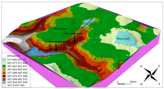 Topographic map of the Yuanjue Grottos and their adjacent area.