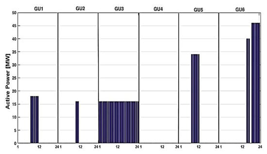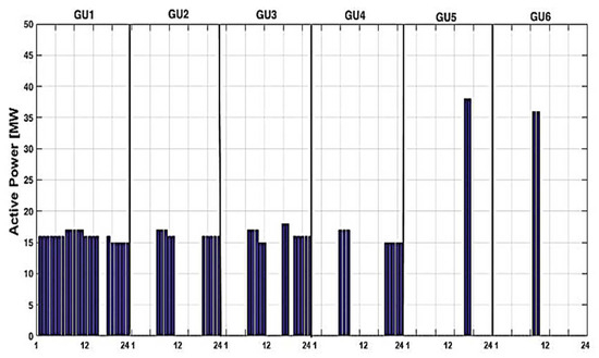 The patterns regarding the hourly loading of the generation units GU1–GU6 in an analyzed three-year period.