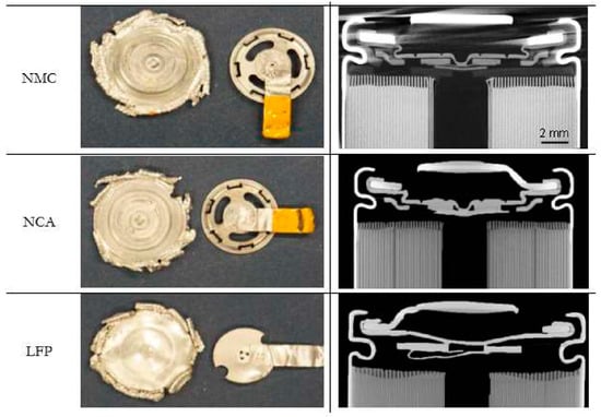 CT-Scans of the different 18,650 cells, which are different in the positive active materials and CIDs.