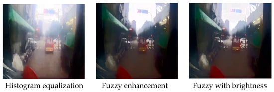Fuzzy was a useful method to deal with image problems with various applications. Fuzzy inference uses fuzzy logic to map inputs to outputs that achieve image-quality enhancement and reduced computational complexity [36], and it involves F-transform, which is used to deal with image compression [37] and image enhancement [38]. In the studies of fuzzy logic-based applications, the focus was on image enhancement. Shakeri et al. [39] determined the number of sub-histograms based on the peaks enables contrast enhancement without compromising the image. Joshi and Kumar [40] used the fuzzy method to enhance the contrast of the low resolution. Based on the fuzzy method, the enhanced images are obtained by equalizing using a histogram-weighting method [41], histogram equalization (HE) method [42], bi-histograms [43], linear regression [44], and neural network [45]. More advanced methods were used to enhance images by adaptive gamma transform [46], structural information for homogeneous background images [47], and image sub-division and quadruple clipped adaptive histogram equalization (ISQCAHE) [48]. The fuzzy technique exhibits lower error and retains brightness better compared to the traditional methods [49]. The comparison demonstrates that fuzzy enhancement outperforms HE, adaptive histogram equalization (AHE) [50,51,52], further studies on features, and weight adjustment to handle low-contrast images [53,54,55,56,57]. The above studies focused on handling broad aspects of image processing and did not explore further multiple-resolution videos. Although the above methods have been used to improve images, these were not suitable, especially in practice where the composition of mobility vehicle videos is relatively complex and is affected by the trucks driving in the surrounding environment of the road or alley. Therefore, this study proposed improving the enhancement method to adjust parameters for handling moving images with multiple resolutions.