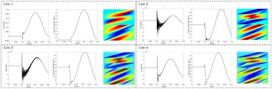 From Figure 12, it is evident that the zero-sequence current signals acquired from actual measurement points contained noise, with varying levels of intensity across different lines. In particular, the signals collected by the measuring device from line L3 exhibited notably prominent noise. However, after the application of moving average denoising to both healthy and faulty feeder signals, the resulting MDF images still displayed significant differences. There was a high degree of similarity observed between MDF images of healthy feeders. Testing shows that the pre-trained MCECA-CloFormer model can accurately select fault lines.