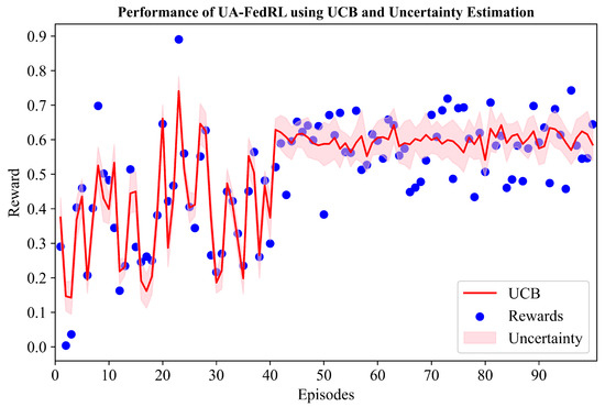 Overall, the UCB algorithm performed better as it achieved a higher expected reward in fewer episodes. Moreover, the uncertainty estimate of the UCB algorithm was not large, indicating that the UCB algorithm was more certain about its predictions. Therefore, the UA-FedRL method can help guide the development of more effective reinforcement learning algorithms in the future for FL applications.