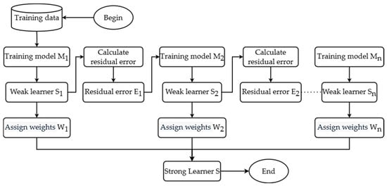 Ensemble learning has become a prominent research direction in machine learning in recent years. Its core concept is to combine multiple weak learners to leverage the strengths of each. The XGBoost algorithm is a type of ensemble learning. It consists of multiple Classification and Regression Tree (CART) decision trees, where each tree predicts the difference between the current predicted value and the actual value. The predictions from each decision tree are accumulated to obtain the final predicted value. The XGBoost modeling process is illustrated in Figure 1.