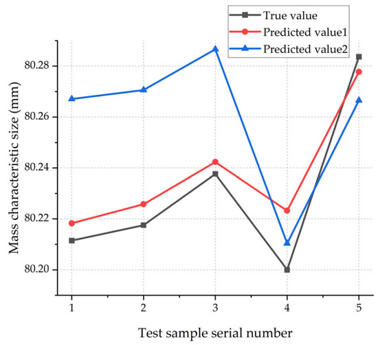 Default values are assigned to each hyperparameter in the XGBoost framework, as shown in Table 6. To verify the effectiveness of hyperparameter optimization based on Bayesian optimization, the model is re-trained (referred to as Model 2) using default hyperparameters and compared with the previously trained model (referred to as Model 1). The root mean square error (RMSE) of Model 2 on the test set is 0.042, which is 0.03 higher than that of Model 1 (0.012). The prediction results of Models 1 and 2 on the test set are shown in Figure 11. From both the figure and the RMSE values, it is evident that Model 1, which uses Bayesian optimization, outperforms Model 2 in terms of generalization ability and prediction accuracy. This demonstrates the effectiveness of Bayesian optimization.