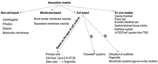 During the investigation of the absorption of food components, several different approaches can be applied. In the case of some high-throughput experiments, non-cell-based transport models or brush border membrane vesicles (Section 2.2) can be used [1,32].
