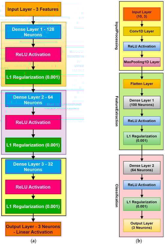 Block diagram of used (a) Multilayered Perceptron (MLP) and (b) Convolutional Neural Network (CNN) classifiers.