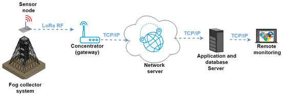These data allow verification of the amount of water recovered from the fog in each tower, which is an important contribution in mountain communities with difficult access to water catchment, and where it is essential to measure how much water can be obtained to supply the community and prevent the system from collapsing in the future due to an increase in the population. In this case, solutions can be proposed in advance. Such data can be obtained thanks to the implementation of Internet of Things (IoT) sensors in the water catchment system.
