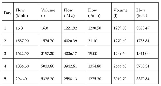 Once the data were downloaded and processed in an electronic sheet, we had the following table, in which the consumption in liters per day is framed [11] (Figure 8).
