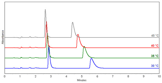 Temperature effect on separation and resolution (methods 29–32) are shown in the chromatograms in Figure 2.