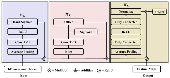 After the backbone and neck structure further refine these features by aggregating information from different scales, the head of YOLOv8 is where the final detection occurs. It processes the aggregated features from the neck to predict bounding boxes and class probabilities. To enhance this process, we use a dynamic head module to unify the attention mechanisms, as shown in Figure 4. The dynamic head [42] combines multiple attention mechanisms at the feature level, spatial location, and output channel. This enables scale-awareness, spatial-awareness, and task-awareness, making the model particularly effective in dealing with complex student behaviors in a classroom setting. The dynamic head module enhances the robustness of student behavior detection, and its design allows for high-performance target detection with relatively low computational resources. Even with limited computational resources, it still provides satisfactory results, aligning with our goal of a lightweight model.