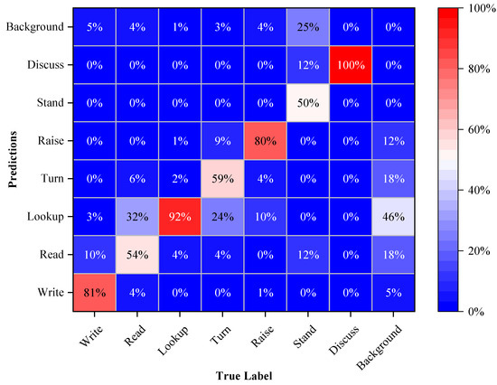 In this context, is a function that measures the similarity between behaviors, and θ represents the parameters of this function. By assessing the input classroom sensor data , we determine the similarity degree with various behavior categories, and the behavior with the highest similarity score is identified as the recognized behavior.