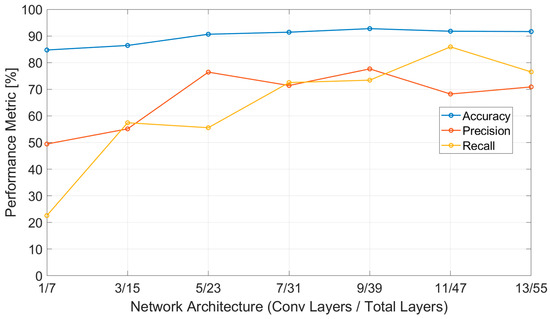 Following the individual metric analyses, a comprehensive evaluation of the CNN model’s performance across different network architectures was conducted using the test set.